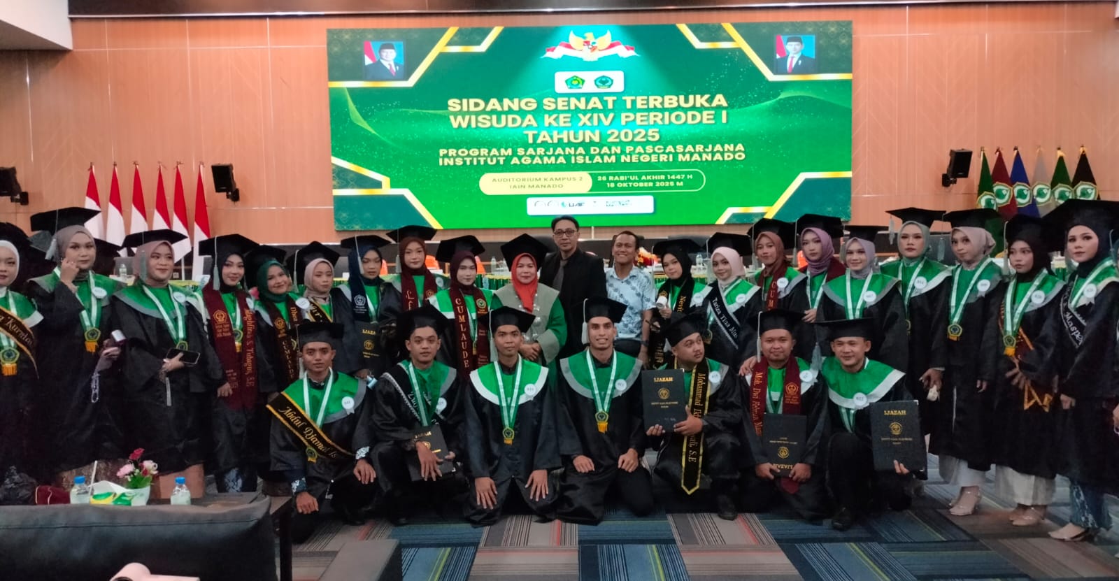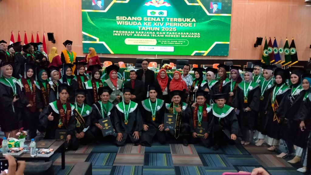 Sabtu, 18 Oktober 2025 IAIN Manado menyelenggarakan wisuda ke XIV yang dilaksanakan secara perdana di gedung Convention Hall pada Kampus II IAIN Manado. Kegiatan wisuda yang dipimpin ketua panitia Wakil Dekan I FEBI Dr. Moh. Muzwir R. Luntajo, M.Si dipadati oleh seluruh civitas akademika IAIN Manado, para wisudawan, para wali serta tamu undangan.