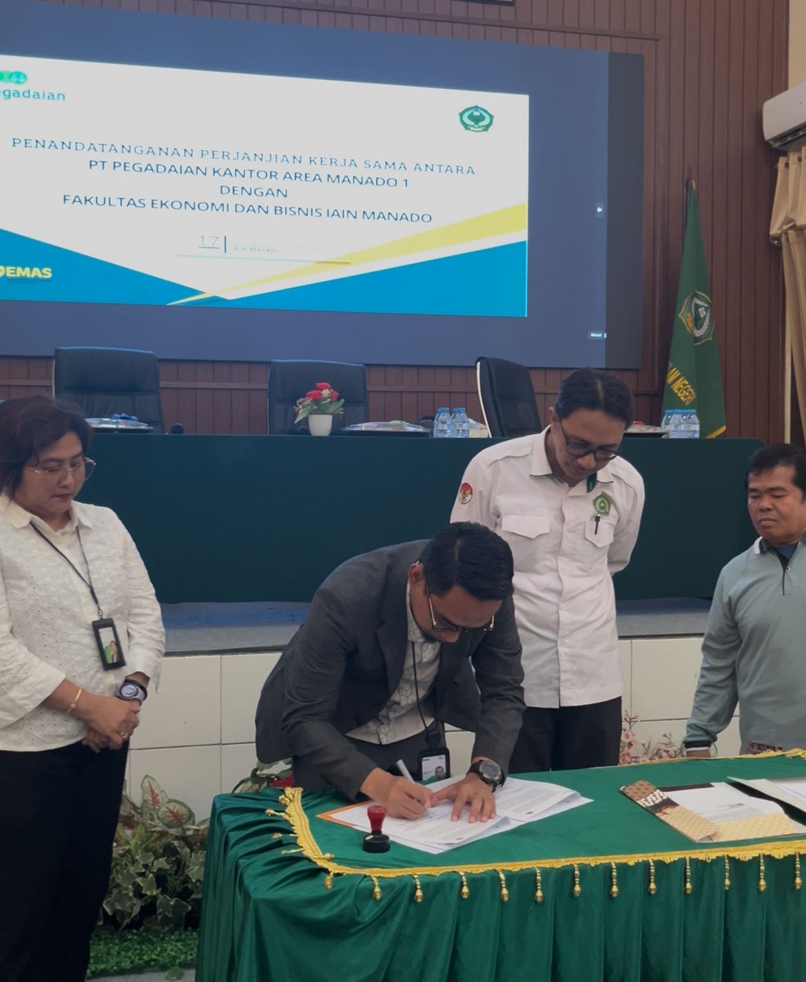 Dari pihak PT. Pegadaian, delegasi dipimpin langsung oleh Deputy Bisnis Area Manado 1, Bpk. Andy Vivin Budi Permana. Beliau hadir didampingi oleh Kepala Departement Produk Gadai, Ibu Stevi Reslin Maabuat, beserta jajaran Tim Area Manado 1 yang turut menyaksikan prosesi penandatanganan.